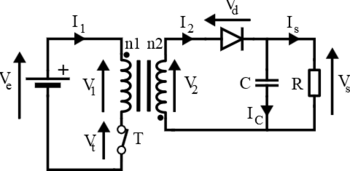 Le montage 'Flyback' est le montage le plus utilisé dans le monde de l'industrie électronique de faible puissance (P <100 W). En effet, celui-ci comporte un bon taux de transfert de l'énergie (80-95%), et de part sa fabrication, il comporte une isolation galvanique permettant de protéger les biens et les personnes présent en avale (au secondaire). De plus, le 'hachage' du courant effectué par le transistor du primaire permet une miniaturisation des éléments selfiques et capacitifs. Ainsi, de part son faible cout de fabrication, son faible encombrement et son bon rendement, c'est une alimentation 'Flyback' est idéale pour une utilisation dans les systèmes embarqués de faible puissance. Pour de plus amples informations sur le montage, veuillez-vous reporter au rapport présent en fin de page.