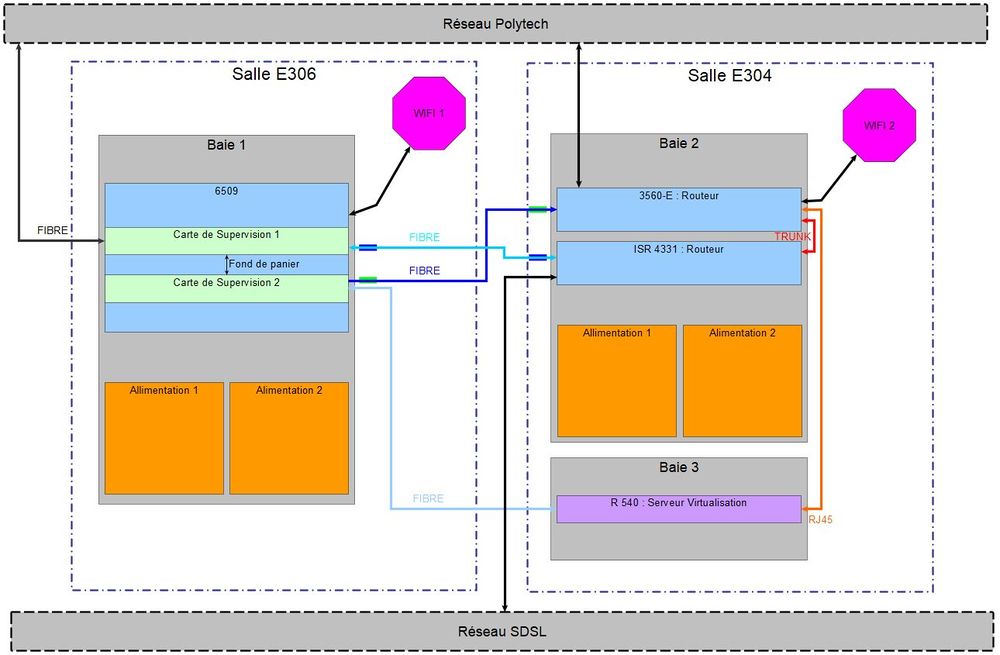- Si on a une coupure de courant tout le réseau s'effondrent, dans l'idéale, il faudrait des onduleurs et un réseau électrique séparé pour la Baie1 et la Baie2/3