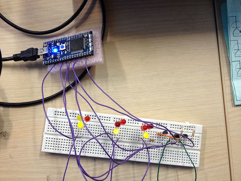 Révision datée du 24 février 2015 à 15:46 par Cduplouy (discussion | contributions) (Test du multiplexage d'une ligne de LED RGB soient 9 LEDs basiques selon le schéma de MUX)