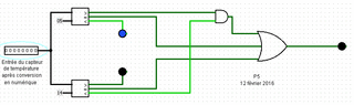 | actuel | 18 février 2016 à 18:01 | 839 × 248 (185 Kio) | Ldamiens (discussion | contributions) | Schéma du circuit (sans les résistances) réalisé sous logisim |