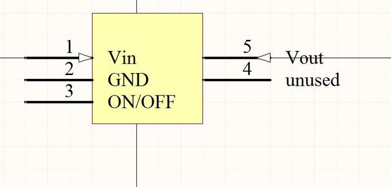 Le schématique du régulateur de 3.3V. D'après le datasheet de ce composant, il consiste de 5 broches. Les fonctions de ces broches sont bien indiqués dans son schématique