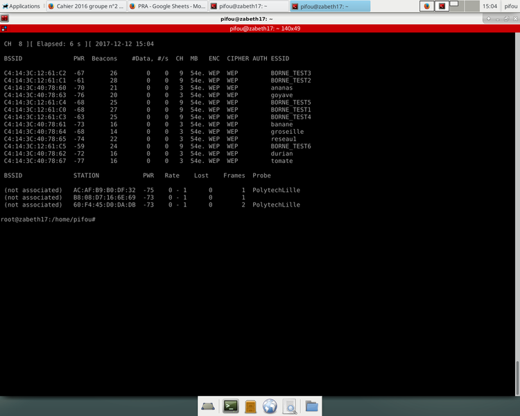 | actuel | 13 décembre 2017 à 14:31 | 1 280 × 1 024 (127 Kio) | Nung (discussion | contributions) | Trouver le BSSID, ESSID et le CH (channel) du réseau WiFi à cracker |