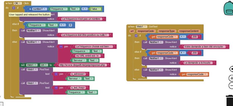 | actuel | 13 décembre 2021 à 13:36 | 1 360 × 618 (151 Kio) | Tgerber (discussion | contributions) | Programmation de notre application. Vérifie si la fréquence est bien un nombre positif ou nul. Renvoi si les modifications ont bien été prises en comptes par le site ou non. |